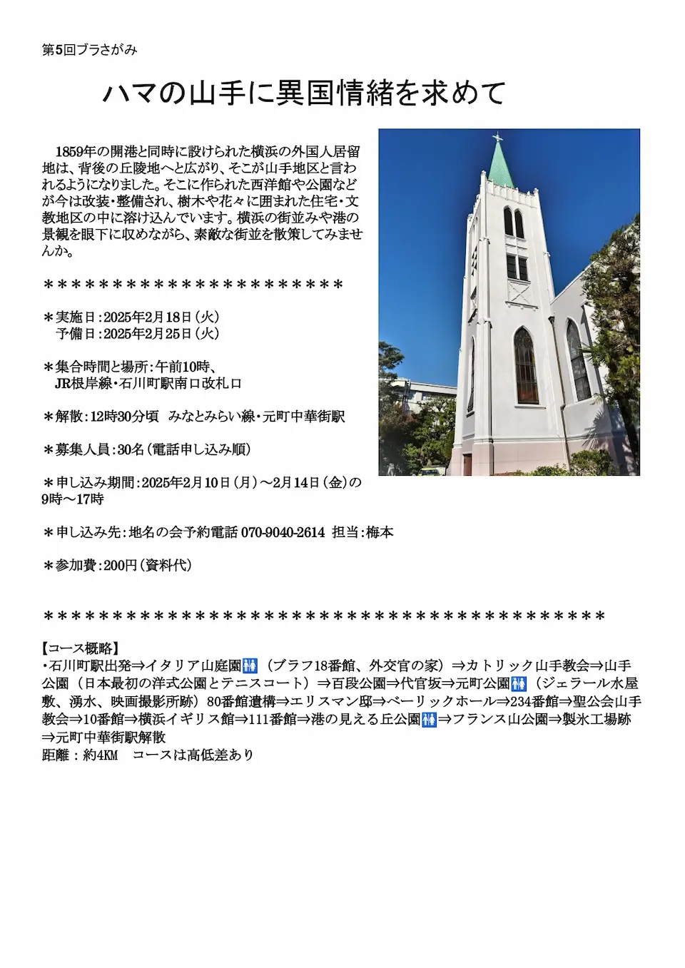 | 集合場所 | JR根岸線・石川町駅南口改札口 |