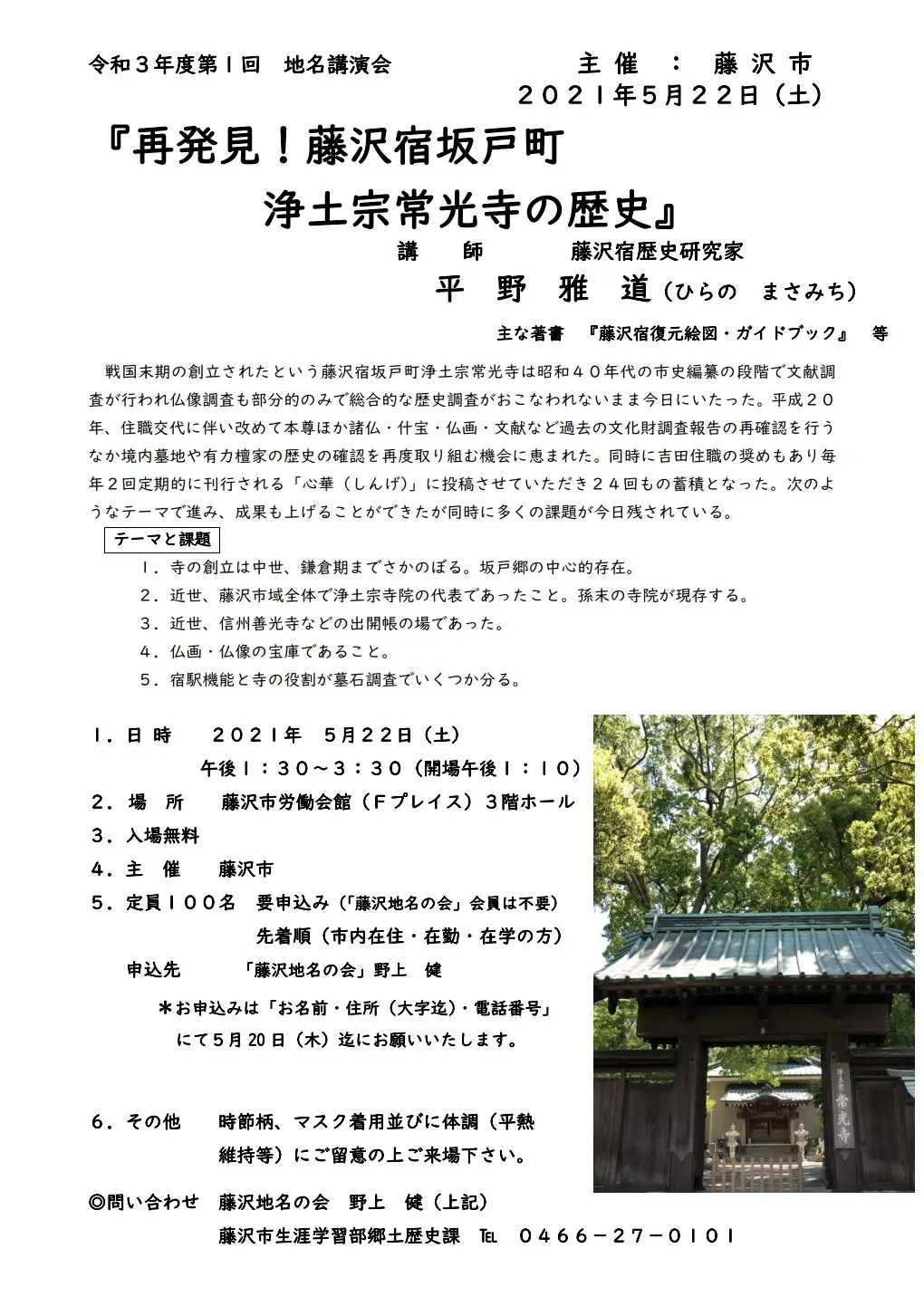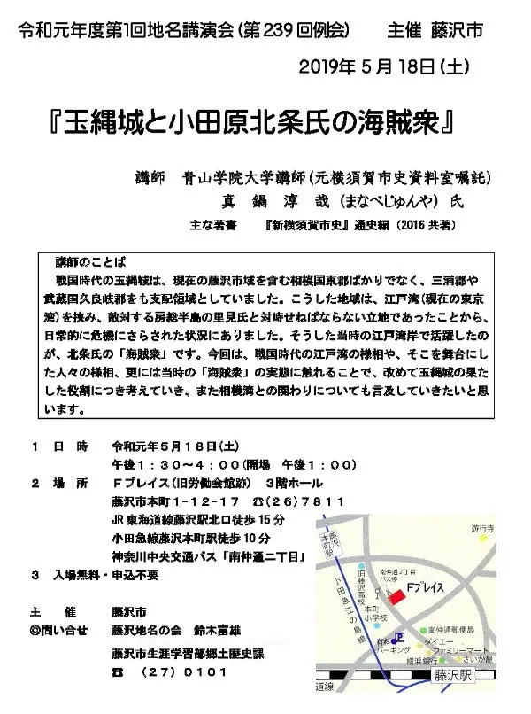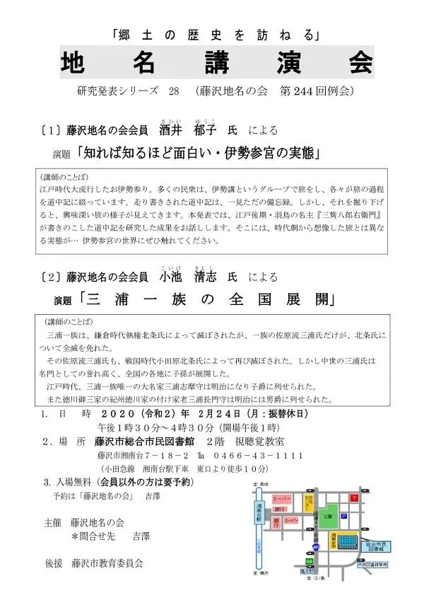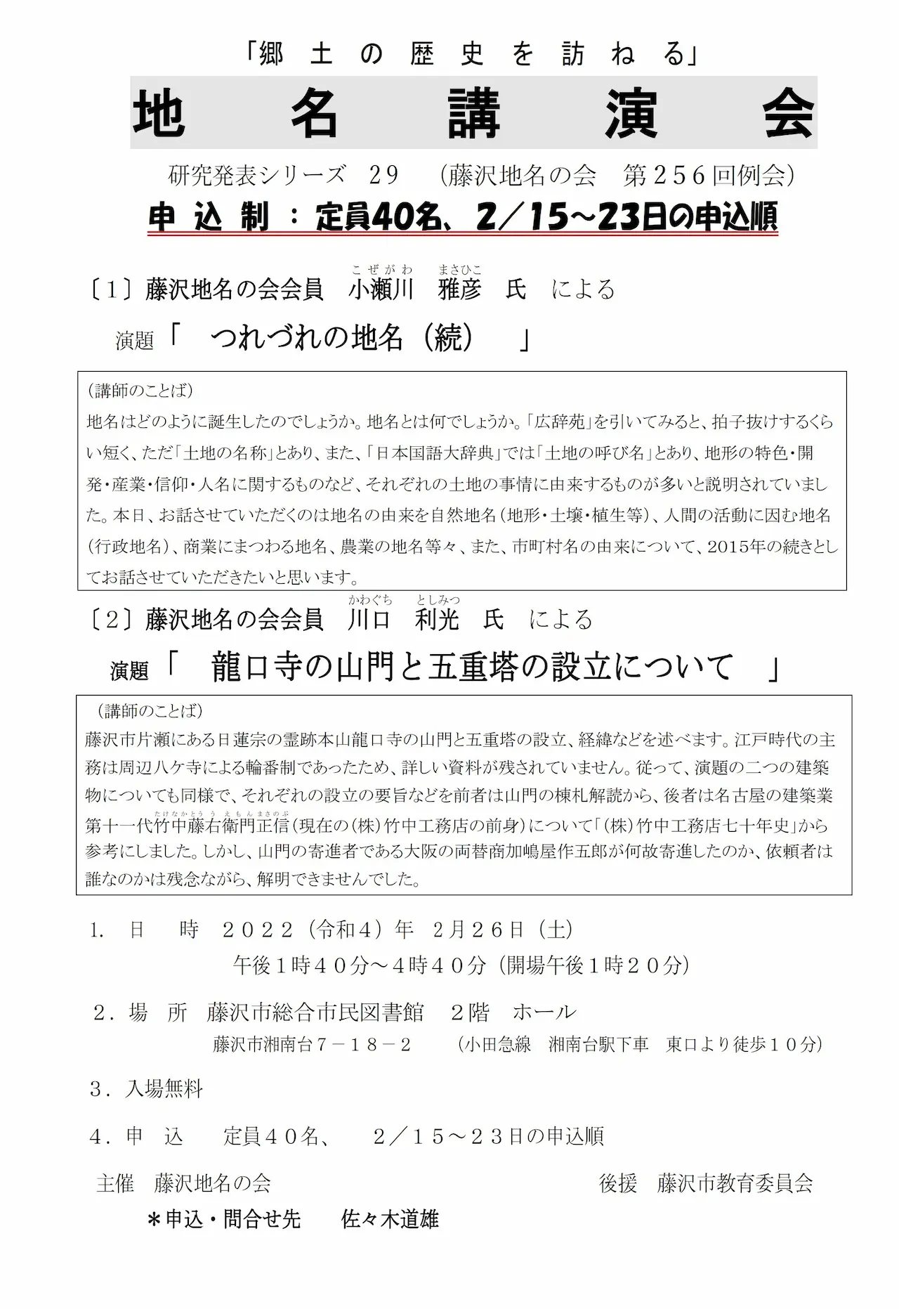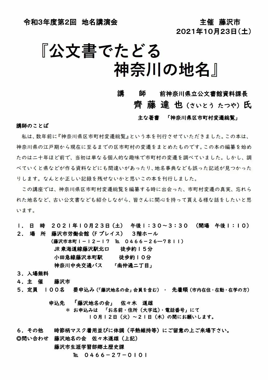 (「藤沢地名の会」会員は申込不要)先着順(市内在住・在勤・在学の方)