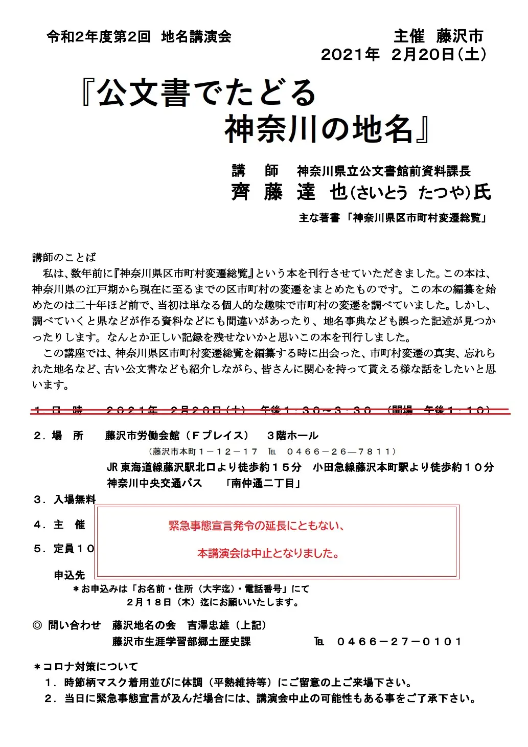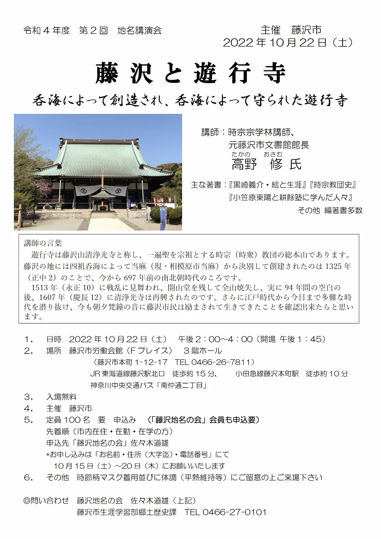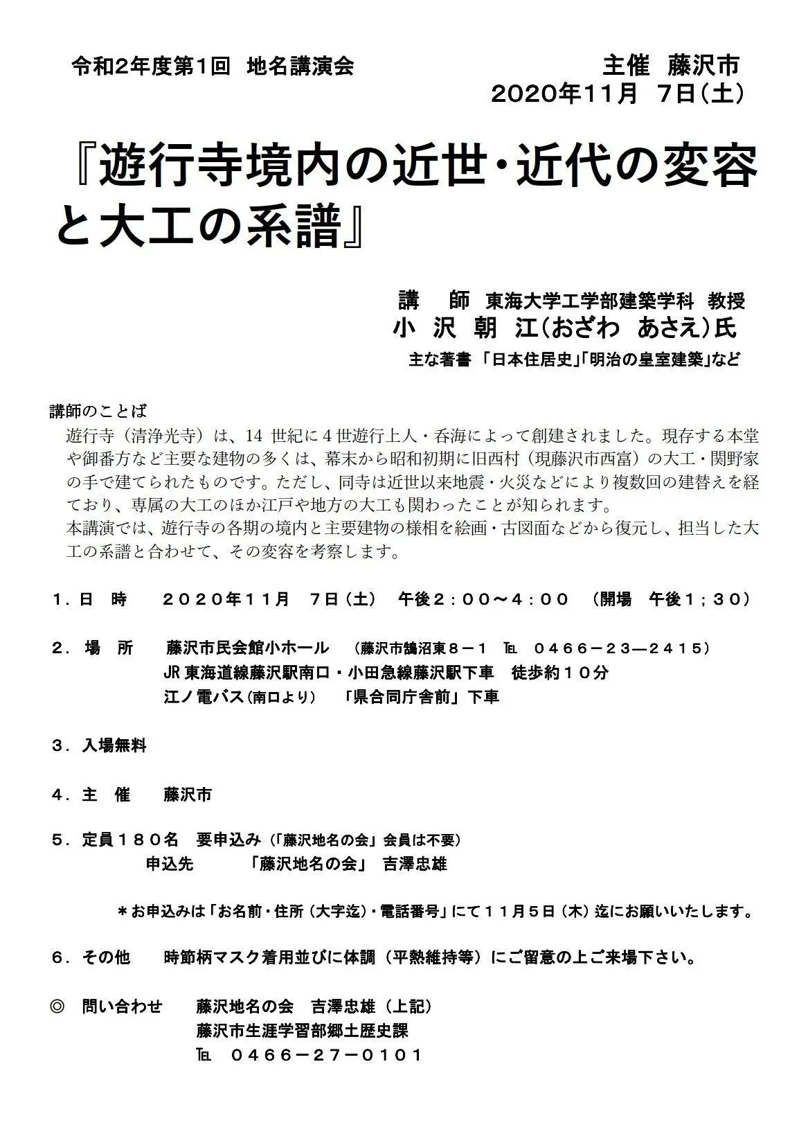 (「藤沢地名の会」会員は申込不要)先着順(市内在住・在勤・在学の方)