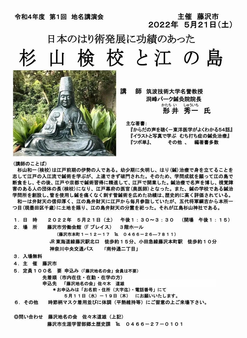 | 演題 | 日本のはり術発展に功績のあった杉山検校と江の島 |